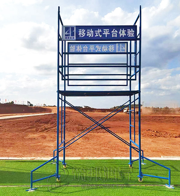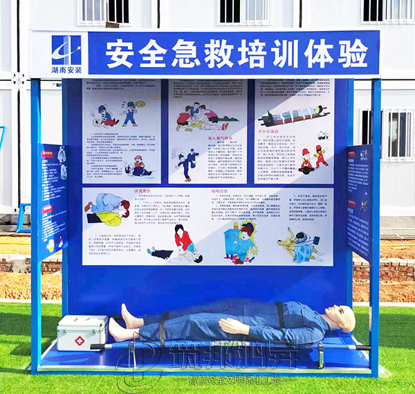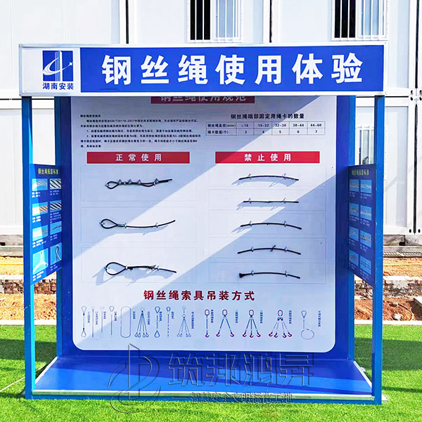 此次合作的安全教育培訓體驗區(qū)建設(shè)包括了班前講評臺、鋼絲繩使用體驗、安全防護用品展示體驗、綜合用電體驗、安全帶使用體驗、安全急救培訓體驗、移動式平臺體驗、洞口墜落體驗、消防器材柜、安全帽撞擊體驗等。標準款采用鋼結(jié)構(gòu)組裝式設(shè)計,高溫烤漆不易褪色,顏色鮮艷更美觀,設(shè)計制作安裝全包。筑邦安排專車送貨到衡陽工地,同時安排了專業(yè)人手迅速到工地加班加點完成安裝。