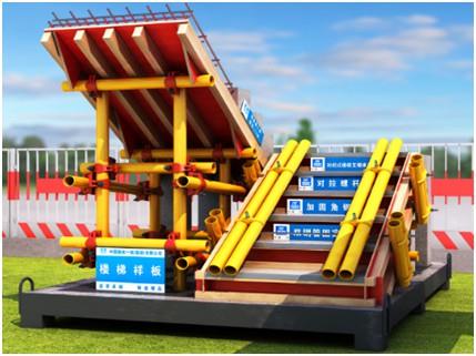工藝展示:雙鋼管固定、對拉螺桿、樓梯支模體系、樓梯施工縫留設(shè)1/3處、施工縫鑿毛、清掃口、支撐模剪刀撐、梯板鋼筋綁扎、混凝土成品展示、樓梯模板卡槽式支護(hù)與加固等工藝。