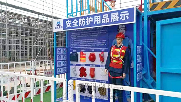 該綜合體搭建三層,整體大氣美觀,各類體驗設(shè)備組合可定制,第一層設(shè)置了安全防護用品體驗,安全急救體驗,安全著裝展示,滅火器演示體驗,綜合用電體驗,安全帽撞擊體驗,機械傷害體驗,安全帶體驗,洞口墜落體驗,第二層設(shè)置了平衡木體驗,垂直爬梯體驗,各類臨邊護欄展示,施工電梯防護門展示,卸料平臺展示。第三層通過爬梯體驗上去,設(shè)置了工地護欄和塔吊護欄展示。