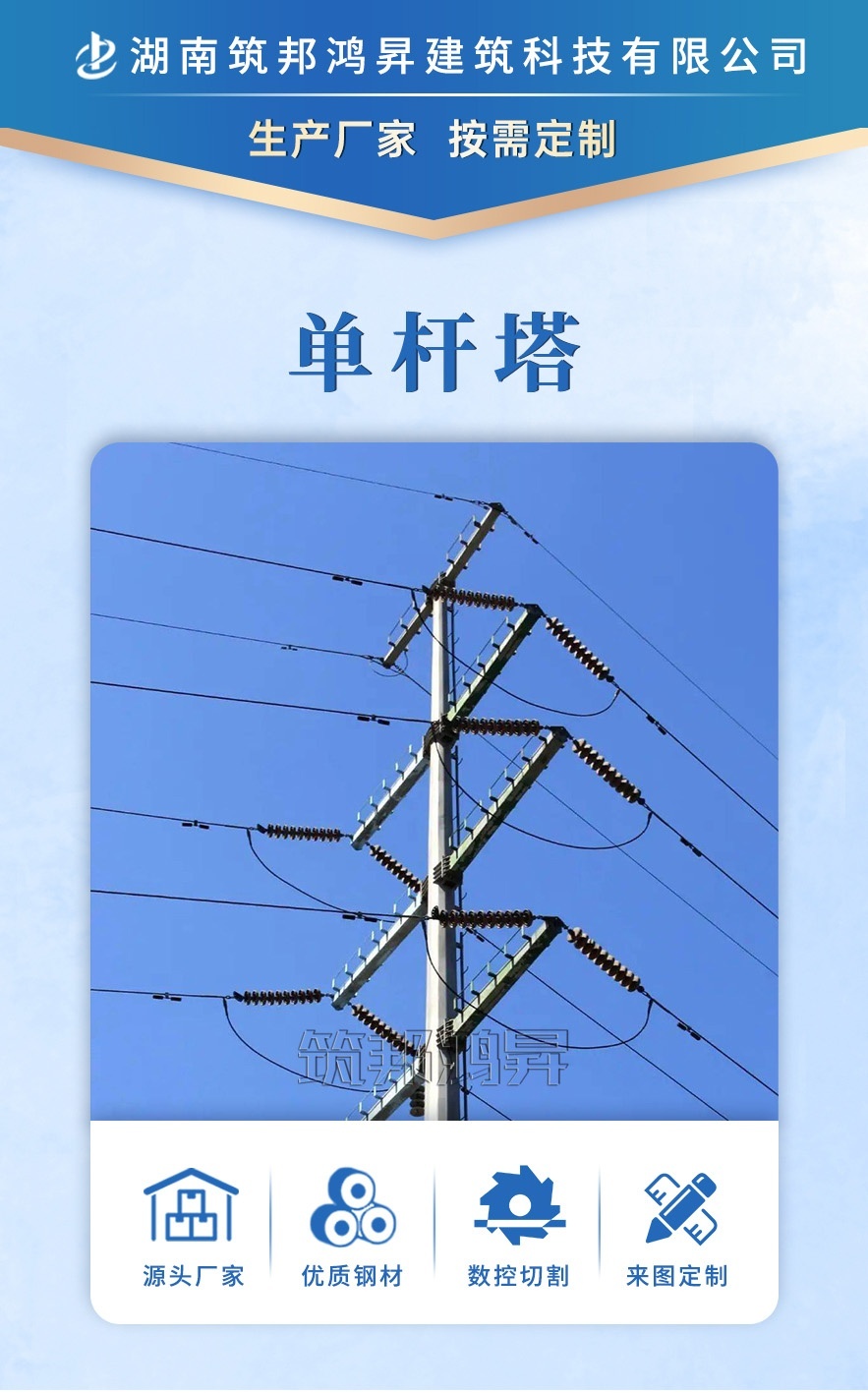 [筑邦鴻昇]單管塔鐵塔采用高壓沖壓、熱鍍鋅工藝,實力大廠供貨準時,服務(wù)周到。